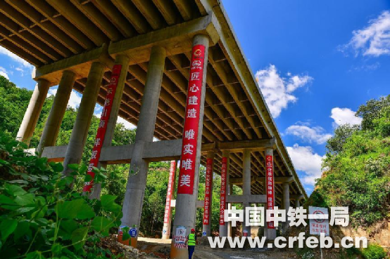 作為“交融文化”,也是更好地展現在了施工工地。在全長10公里的施工里程內,臨近既有省道、縣道以及跨越高速公路的工點,都張貼了彰顯文化的巨幅標語口號。