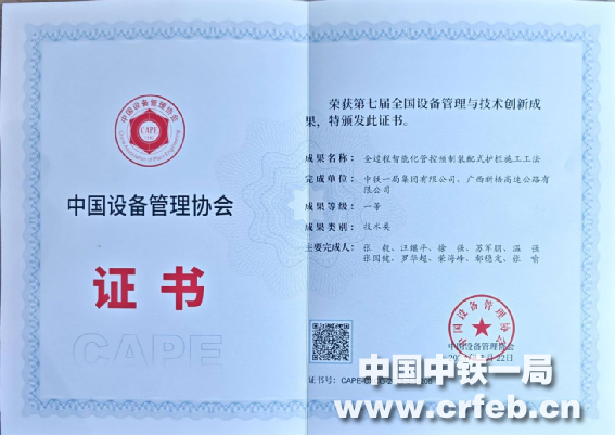 7月22日,第七屆全國(guó)設(shè)備管理與技術(shù)創(chuàng)新成果交流大會(huì)在南京舉行,由中鐵一局三公司蒼容高速3標(biāo)項(xiàng)目與廣西新梧高速公路有限公司聯(lián)合完成的《全過(guò)程智能化管控預(yù)制裝配式護(hù)欄施工工法》項(xiàng)目,榮獲第七屆全國(guó)設(shè)備管理與技術(shù)創(chuàng)新成果技術(shù)類(lèi)一等獎(jiǎng)。