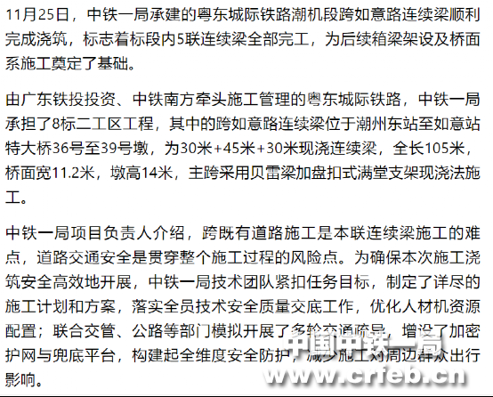 《科技日?qǐng)?bào)》客戶端:粵東城際跨如意路連續(xù)梁澆筑完成