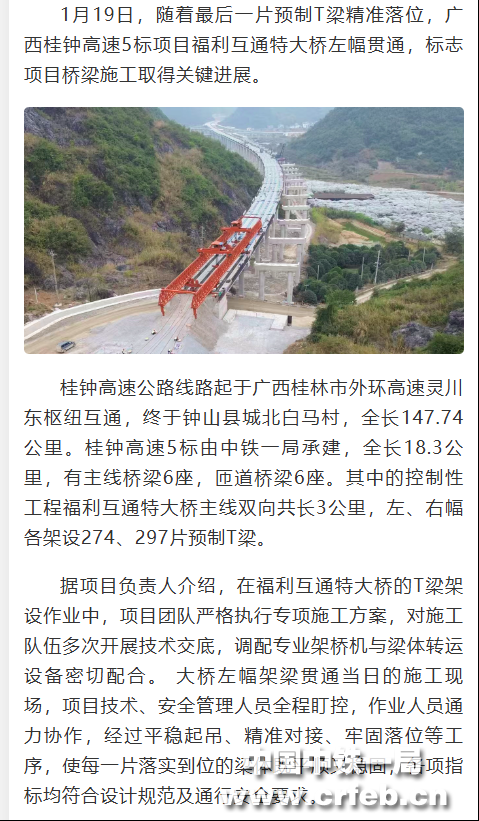 《光明日報》客戶端:廣西桂鐘高速福利互通特大橋左幅貫通