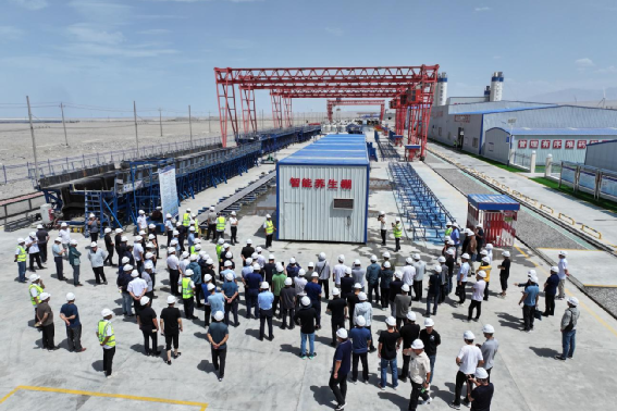 烏魯木齊局百人觀摩團走進羅若鐵路智慧鋪架基地
