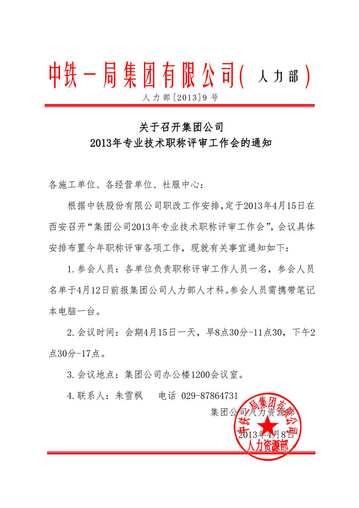 關于召開集團公司2013年專業技術職稱評審工作會的通知