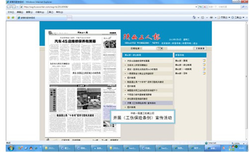 陜西工人報(bào)5月8日第二版企業(yè)短訊專欄刊載建工機(jī)械公司工傷保險(xiǎn)集中宣傳情況