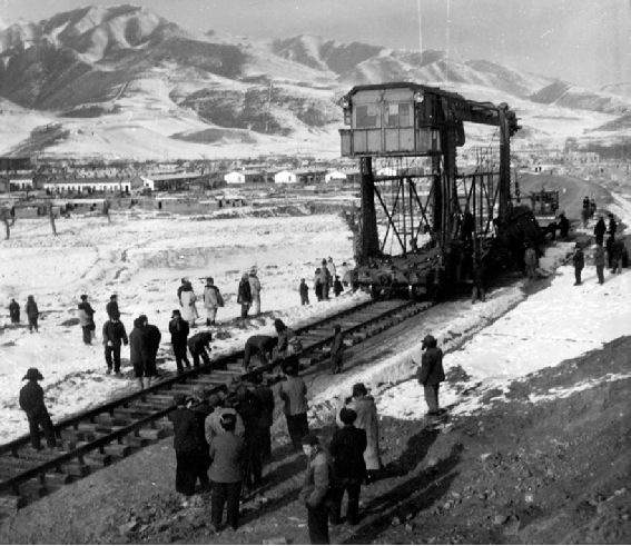1952年8月31日,天蘭鐵路修通,毛澤東主席為祝賀天蘭鐵路修通親筆題詞:慶賀天蘭路通車,繼續努力修筑蘭新路。在黨的感召下,中鐵一局三公司第一代筑路人經甘肅蘭州,沿途入疆,過天山南麓,越“百里風區”,穿過天山向烏魯木齊挺進。