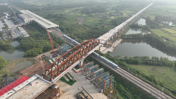 世界首座四線高速鐵路轉體鋼箱桁組合橋“華麗轉身”