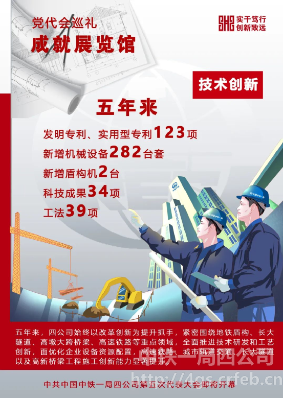 五年來,四公司始終以改革創(chuàng)新為提升抓手,積極實施科技創(chuàng)新,強化技術(shù)引領(lǐng),加快成果應(yīng)用。緊密圍繞地鐵盾構(gòu)、長大隧道、高墩大跨橋梁、高速鐵路等重點領(lǐng)域,全面推進技術(shù)研發(fā)和工藝創(chuàng)新,面優(yōu)化企業(yè)設(shè)備資源配置,高速鐵路、城市軌道交通、長大隧道以及高新橋梁工程施工創(chuàng)新能力顯著提升,特別是高海拔地區(qū)公路隧道技術(shù)達(dá)到國內(nèi)先進水平;培育專家型技術(shù)人員隊伍,成立了專家創(chuàng)新工作室,推動企業(yè)重難點工程技術(shù)攻關(guān)。