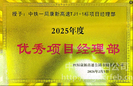 近日,康新高速1標項目憑借突出的工程品質與卓越的管理成效,連續四年榮獲四川康新高速公路有限責任公司“優秀項目經理部”榮譽稱號,項目負責人茍濤獲評2025年度“先進個人”。