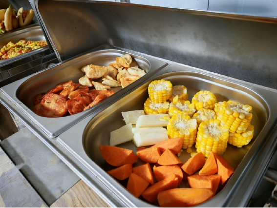 針對分部內(nèi)患有糖尿病的職工,食堂特別推出“控糖專屬套餐”。套餐嚴格控制主食攝入量,以雜糧飯、蕎麥面等粗糧為主,搭配低油、低鹽、低糖的蔬菜和優(yōu)質(zhì)蛋白質(zhì),既保證營養(yǎng)均衡,又幫助職工控制血糖。用雜糧粥替代白粥,用蒸山藥、涼拌黃瓜替代高淀粉菜品,用蔬菜和面代替精白面饅頭,讓暖心服務(wù)精準落地。“以前擔(dān)心早餐吃包子血糖波動,現(xiàn)在食堂專門給我們準備了雜糧飯、水煮蛋還蒸的有好幾種粗糧,太貼心了!”提及食堂的變化,患有糖尿病的職工老李笑著說。食堂團隊從“舌尖”上的細節(jié)破題:一方面嚴守食材“干凈關(guān)”,每日采購的新鮮蔬菜、肉類,保證食材的新鮮,餐具高溫消毒,半開放的操作間實時向職工公示衛(wèi)生情況,讓職工的每一口飯都吃得放心。
