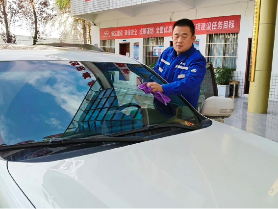 司機文曉毛進行車輛保潔