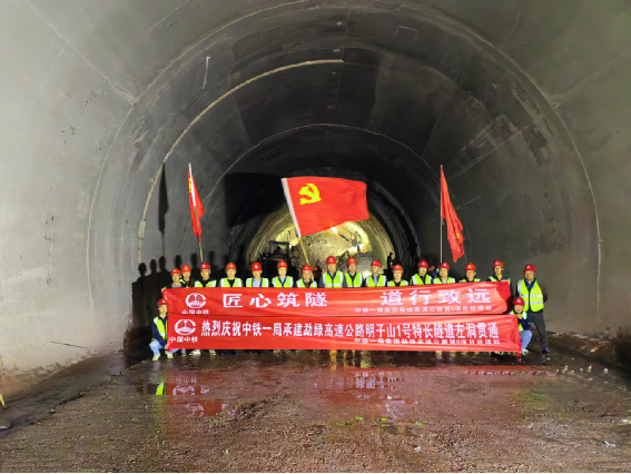 歷時三年多艱苦奮戰,2025年1月1日上午10 時15分勐綠高速公路第8項目部明子山1號特長隧道左幅順利貫通。隧道貫通現場,黨員們揮舞著黨旗,臉上洋溢著疲憊卻堅定的笑容——從測量放線到圍巖監測,從初期支護到二次襯砌,每一道工序都凝聚著黨員的責任與擔當。為保障施工進度,黨員技術骨干牽頭成立 “攻堅技術組”,將 QC 研究成果轉化為實際施工效能,通過優化通風系統、改進爆破參數,使隧道施工效率提升20%。?