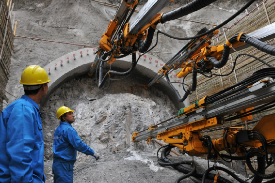 鄭渝高鐵神農(nóng)架段全電腦三臂鑿巖機在三號橫洞開鉆鑿巖