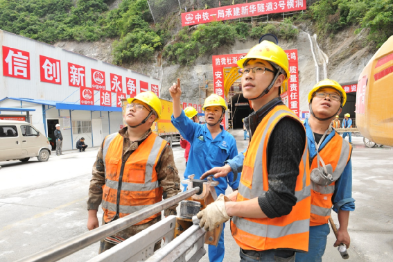 2021年1月25日,經(jīng)過46個月施工全長18790米,最大開挖斷面152平方米,最大埋深約1023米的鄭渝高鐵湖北段8標新華隧道順利貫通。那組建設(shè)者慶賀隧道貫通片,被省內(nèi)多家主流媒體刊用。