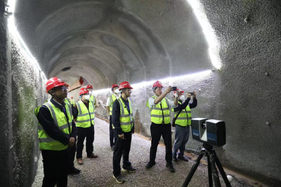 據悉,澄江隧洞主洞斷面設計斷面尺寸為3.78米×4.14米,僅為常規高鐵單洞雙線隧道斷面大小的六分之一。針對水利施工小斷面長難隧洞施工特性,項目團隊擔當作為、主動出擊,以機械化、標準化為抓手賦能工程建設提質增效,因“隧”制宜全面推行定制小型化履帶式多功能鉆機、礦用挖掘式裝載機、地下自卸車、混凝土攪拌等機械設備,形成了集“探”“挖”“運”“支”“襯”的小斷面水利隧洞施工工序,實現了現場施工工序高效搭接、流水作業。同時注重工藝工法創新,強化“五小四新”推廣應用,運用監控量測、三維激光掃描高精云圖“雙重機制”實現隧洞開挖質量檢測、變形監測和安全管理,利用隧道鉆爆法工序循環軟件“大數據”支撐優化施工組織,助推項目建設實現安全效益、質量效益。