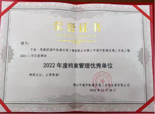 佛山3203標項目獲2022年度檔案管理優秀單位