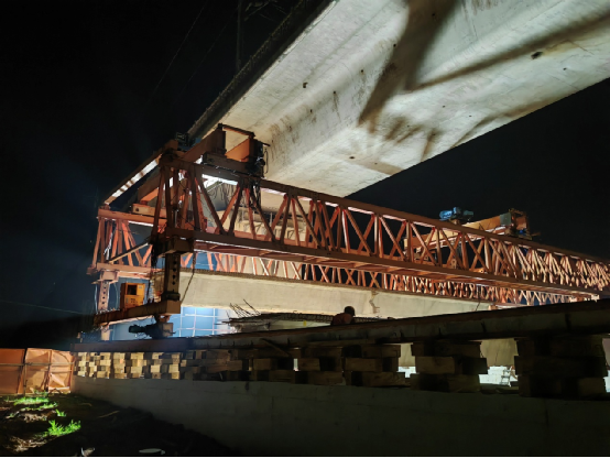在每一個萬籟俱寂的深夜,當城市陷入沉睡,G320項目現場卻是一片緊張而有序的繁忙景象。建設者們協同作戰,在4小時的“天窗點”內,安全高效地完成吊裝、架設、澆筑等一系列高難度動作。面對近在咫尺的高鐵線路,他們嚴格執行臨近既有線施工安全防護方案,嚴格落實“一日作業標準化”工作要求,將重點區域、重點環節、重大風險劃分網格單元,設立網格長、網格員滲透到各個作業面,通過“一日一方案、一日一預想、一日一交底、一日一確認、一日一總結”的形式,對所有作業面進行全程監控,最終實現了安全生產“零事故”。