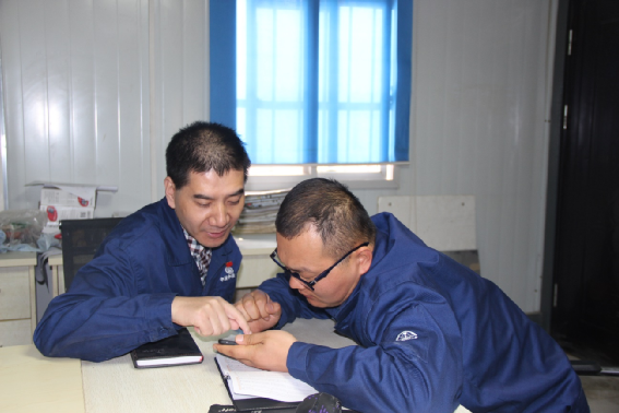 下午2點10分,梁西軍在勞模工作室與工程技術人員進行研討。創新工作室現承擔7項科研,8項專利發明,11項QC,6項五新技術。