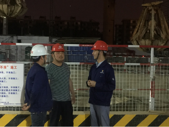 11時40分,梁西軍在五路口工區仔細檢查設備。了解盾構施工情況。