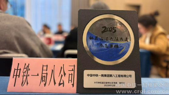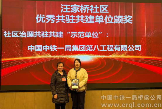 12月19日,在重慶兩江新區(qū)大竹林街道汪家橋社區(qū)2025年度共建單位表彰大會上,中鐵一局八公司被授予社區(qū)治理共駐共建“示范單位”榮譽(yù)稱號,以表彰其在社區(qū)文化共建與志愿服務(wù)中作出的突出貢獻(xiàn)。