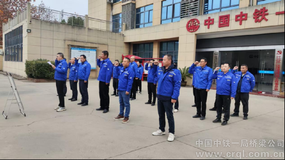 活動當日,項目負責人結合工程建設實際,深入解讀憲法核心要義及與行業密切相關的法律條款,強調憲法在規范項目管理、保障安全生產、維護職工權益中的根本性作用,號召全體員工將法治思維貫穿于項目規劃、施工與管理全過程。在項目部憲法宣誓牌前,全體人員莊嚴列隊,高舉右拳進行憲法宣誓并在“學習宣傳貫徹習近平法治思想? 推動憲法深入人心”主題橫幅上鄭重簽名,許下踐行法治的莊嚴承諾。