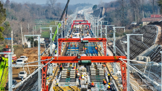 為了完成“3·15”節點目標,今年春節一過,項目就掀起大干高潮。兩級公司領導班子帶班深入現場、靠前指揮,過程中創新采用多項工裝,形成“機械化施工法”和“集團軍作戰”,高峰時段,22套先進工裝、3000余名現場作業人員同時工作,創造了道床板施工日進度3000米的“襄荊速度”,為保證全線鋪軌施工按期從中鐵一局標段啟動奠定了堅實基礎。