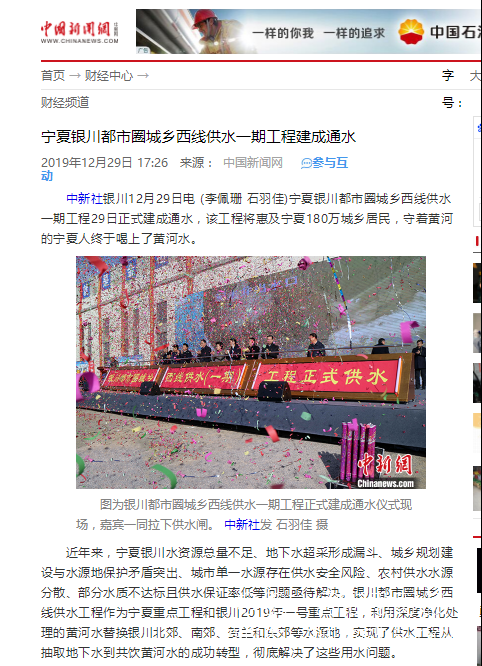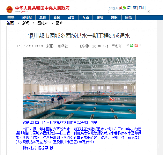 中國(guó)政府網(wǎng)報(bào)道:銀川都市圈城鄉(xiāng)西線供水工程項(xiàng)目通水