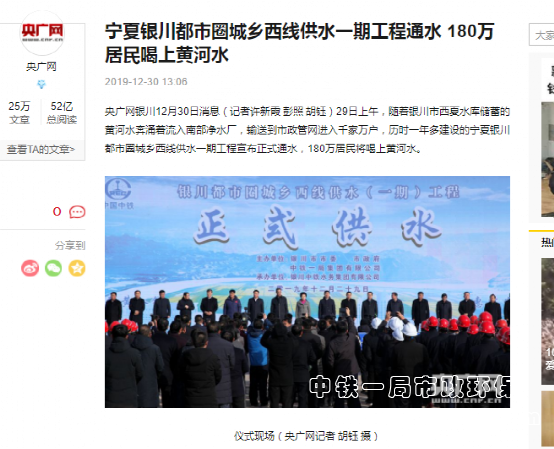 央廣網(wǎng)報(bào)道:銀川都市圈城鄉(xiāng)西線供水工程項(xiàng)目通水