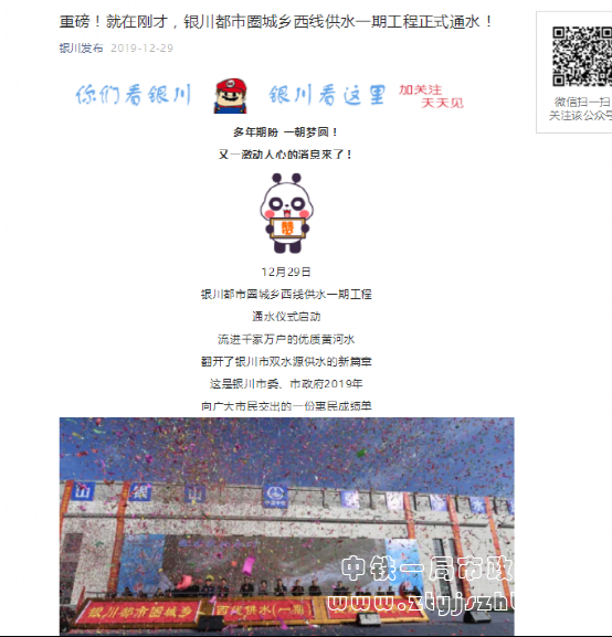 銀川發(fā)布報(bào)道:銀川都市圈城鄉(xiāng)西線供水工程項(xiàng)目通水