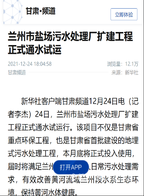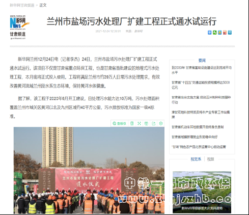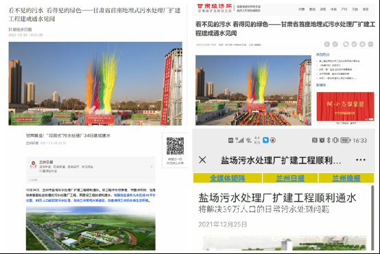12月24日至26日,新華社、光明日報、工人日報、學(xué)習(xí)強(qiáng)國、人民網(wǎng)、新華網(wǎng)、甘肅日報、甘肅電視臺、蘭州晨報、蘭州晚報等13家媒體對蘭州鹽場污水處理廠項目成功通水試運(yùn)行進(jìn)行采訪報道。