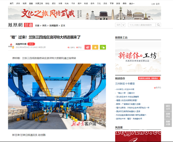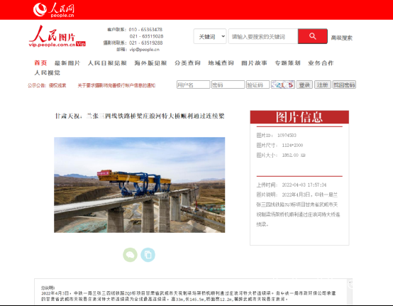 4月3日,人民網(wǎng)報道:甘肅天祝:蘭張三四線鐵路橋梁莊浪河特大橋順利通過連續(xù)梁