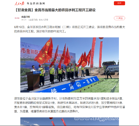 多家媒體報(bào)道公司承建的金昌市最大的農(nóng)田水利工程開工建設(shè)。