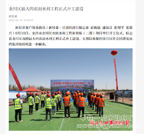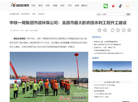 每日甘肅網(wǎng)報(bào)道:中鐵一局集團(tuán)市政環(huán)保公司:金昌市最大的農(nóng)田水利工程開工建設(shè)