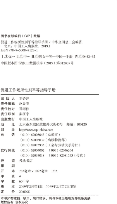 為推動用人單位貫徹男女平等基本國策,落實性別平等法律法規, 全國總工會在調研基礎上,編寫了《促進工作場所性別平等指導手冊》