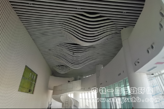 美術(shù)館二層異形鋁方通吊頂完成