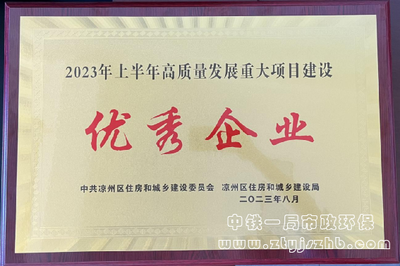 8月11日,經過對涼州城區污水處理廠項目現場觀摩及綜合評選,并根據該項目在推進鄉村振興、改善生態環境等方面的突出貢獻,由公司承建的涼州城區污水處理廠項目代表中鐵一局榮獲“2023年上半年高質量發展重大項目建設優秀企業”榮譽稱號。