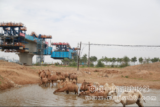 為了最大程度的不影響當?shù)伛橊劦纳盍?xí)性,項目部對駱駝每天的生活習(xí)性進行摸排,還想方設(shè)法保留了在連續(xù)梁附近原有的駱駝飲水區(qū),根據(jù)駱駝的移動軌跡在施工現(xiàn)場為“它們”設(shè)置了“綠色通道”。