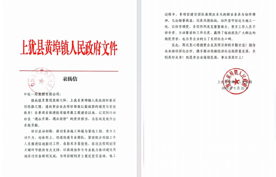 近日,上猶縣黃埠鎮人民政府向中鐵一局城西大道(上猶羅邊至黃埠段)新建工程、S221公路改建工程EPC項目經理部發來表揚信并贈送錦旗,表彰項目部在工程建設中貫穿“創造、質量、品牌”理念,展現卓越擔當與專業實力,為黃埠鎮高質量發展注入強勁動能。