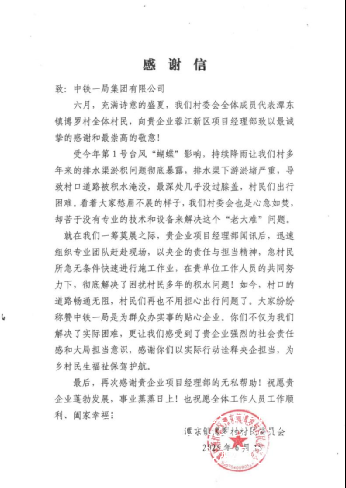 近日,中鐵一局接連收到兩份特殊的“禮物”:蓉江新區(qū)項目部收到潭東鎮(zhèn)博羅村委會送來的錦旗與感謝信,大上崇項目獲社溪鎮(zhèn)麻田村委會贈予的錦旗。這兩面錦旗與感謝信,既是村民對項目團(tuán)隊工作的肯定,更是對公司踐行社會責(zé)任、心系群眾需求的高度認(rèn)可。
