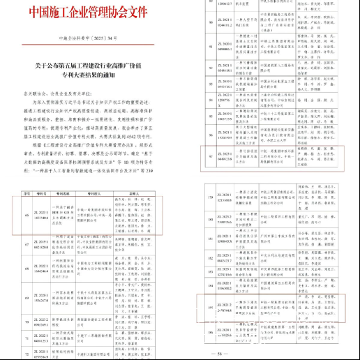 公司三項專利成果榮獲中國施工企業管理協會高推廣價值專利