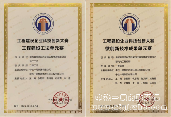 在工法大賽賽道中《灌漿套筒裝配式橋梁四柱墩高精度拼裝施工工法》取得二類工法。