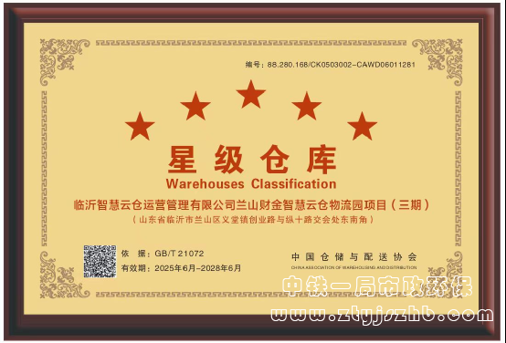 行業最高等級!臨沂智慧云倉物流園項目榮獲中國倉儲與配送協會“五星級倉庫”稱號