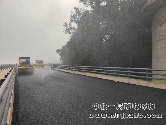 本次施工路段全長約1.4公里,采取全幅攤鋪工藝,有效減少縱向接縫,確保路面整體平整度。施工期間,項目團隊克服了復雜天氣與連續作業的雙重挑戰。清晨時分,現場常被濃霧籠罩,能見度較低,但攤鋪作業仍按計劃持續推進,施工人員在霧中密切配合,保障工序銜接有序。為全力推進工程進度,團隊還科學組織了夜間施工,在確保照明與安全的前提下,保持了施工節奏的連貫穩定?,F場負責人帶班管控,對瀝青溫度、碾壓遍數與邊角處理等關鍵環節進行嚴格把關,保障了路面成型均勻密實、質量達標,為后續順利通車奠定了堅實基礎。