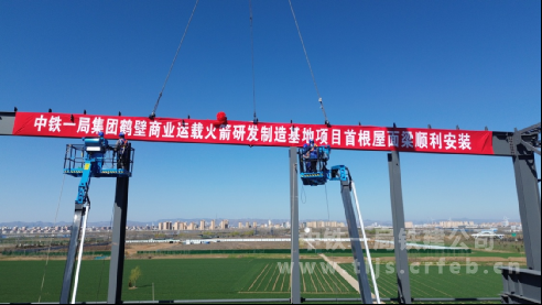 中鐵一局鶴壁市淇濱區(qū)商業(yè)運(yùn)載火箭研發(fā)制造基地項(xiàng)目首根大型鋼結(jié)構(gòu)主梁成功吊裝