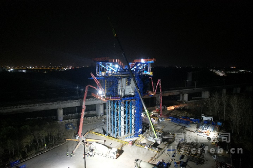 中鐵一局滬寧合高鐵跨京滬高鐵立交特大橋轉體橋一號塊澆筑成功