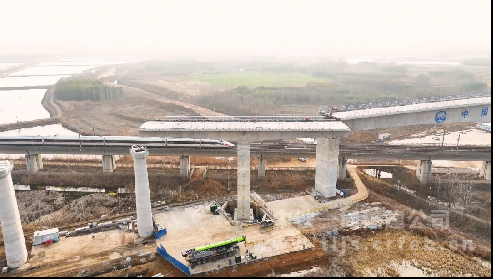 據悉,該特大橋全長約17.6公里,先后跨越京滬高鐵、天潛高速等多條交通干線,是全線控制性工程。其中,跨越京滬高鐵部分采用“2×32米轉體T構梁+2×100米T構轉體梁”組合設計,2×100米T構梁已于1月16日轉體到位。