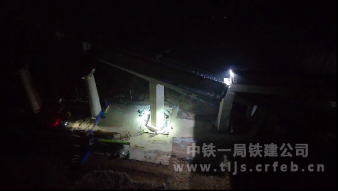 為實現安全精準轉體,項目團隊成立專項技術攻關組,量身定制施工方案。在2×32米轉體T構梁施工中,項目團隊提前完成主體結構澆筑,嚴格把控鋼筋綁扎、預應力管道布設關鍵工序;采用動態平衡配重法與球鉸精準定位牽引系統,為梁體裝上“精密轉軸”。施工全程依托智能監測系統,實時采集轉體姿態、受力、風速等數據,技術人員通過數據終端動態調控,確保毫米級響應糾偏。同時,項目團隊嚴格執行鄰近營業線施工規范,建立“網格化責任矩陣”,將安全責任細化至每道工序、每個崗位,實現了安全與精度雙控。