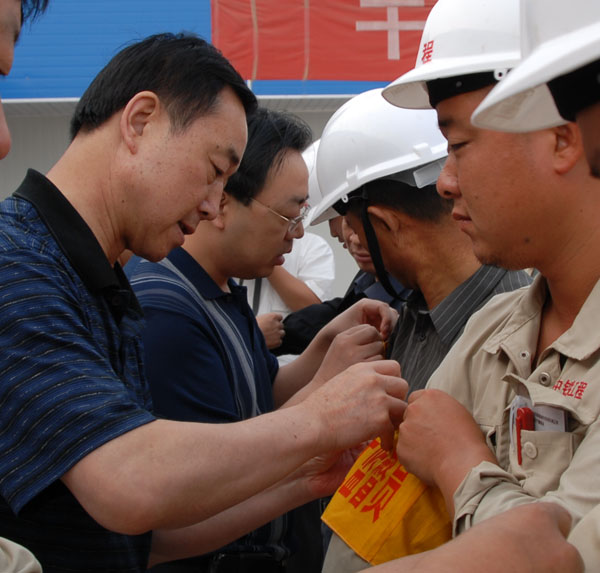 615上午,在西安咸陽國際機(jī)場高速N1標(biāo)項(xiàng)目部,公司總經(jīng)濟(jì)師黃長春等領(lǐng)導(dǎo)親手為六名受聘職工、農(nóng)民工戴上“職工安全監(jiān)督員”袖標(biāo)。此次全公司共聘任安全職工監(jiān)督員72名,其中職工39名,農(nóng)民工33名。這是公司黨政工團(tuán)在“綜合治理,保障平安”安全月開展的主題教育系列活動(dòng)之一。