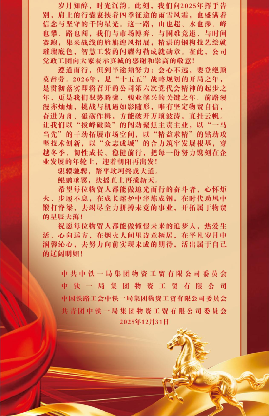 礪行馭勢 新途騰驤——中鐵一局物貿公司2026年新年賀詞