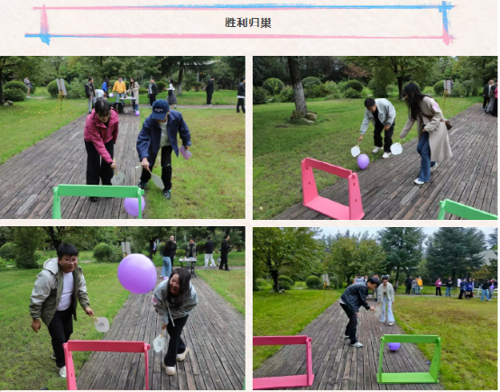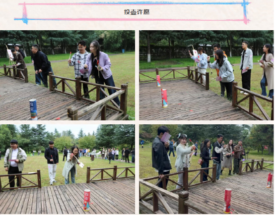 午后時光,趣味十足的“心動大闖關(guān)”正式開啟。“投壺許愿”、“勝利歸巢”、“你比劃我猜”、“你的聲音我的方向”四項挑戰(zhàn)依次展開。青年們兩兩結(jié)對,或屏息瞄準(zhǔn)投壺、或持扇趕球歸巢,或用動作傳遞詞語、或憑聲音指引方向,配合間的默契與信任不斷加深,每完成一關(guān)獲得的印章,都成了彼此交流的新話題。
