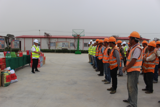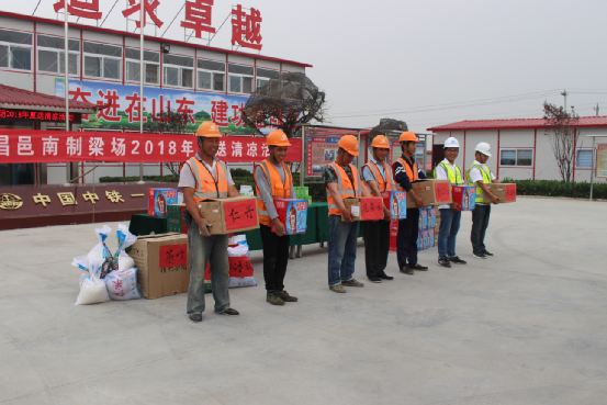 炎炎夏日灼灼驕陽,為保障一線員工的生產安全,昌邑南制梁場積極響應公司號召,組織開展了一系列夏日“送清涼”慰問活動,辦公室組織發放夏季防暑降溫物品,項目經理高飛為全體施工人員普及高溫預防知識。