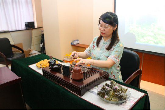 活動中,公司工會主席徐澎在活動現場為職工送上了真摯的祝福。為了使員工感受端午習俗,活動安排有古箏表演、書法寫作、茶藝展示、巧手繡香囊等內容,并安排有粽子、糕點等小零食供大家享用,讓大家體驗到了濃濃的中華傳統文化魅力。